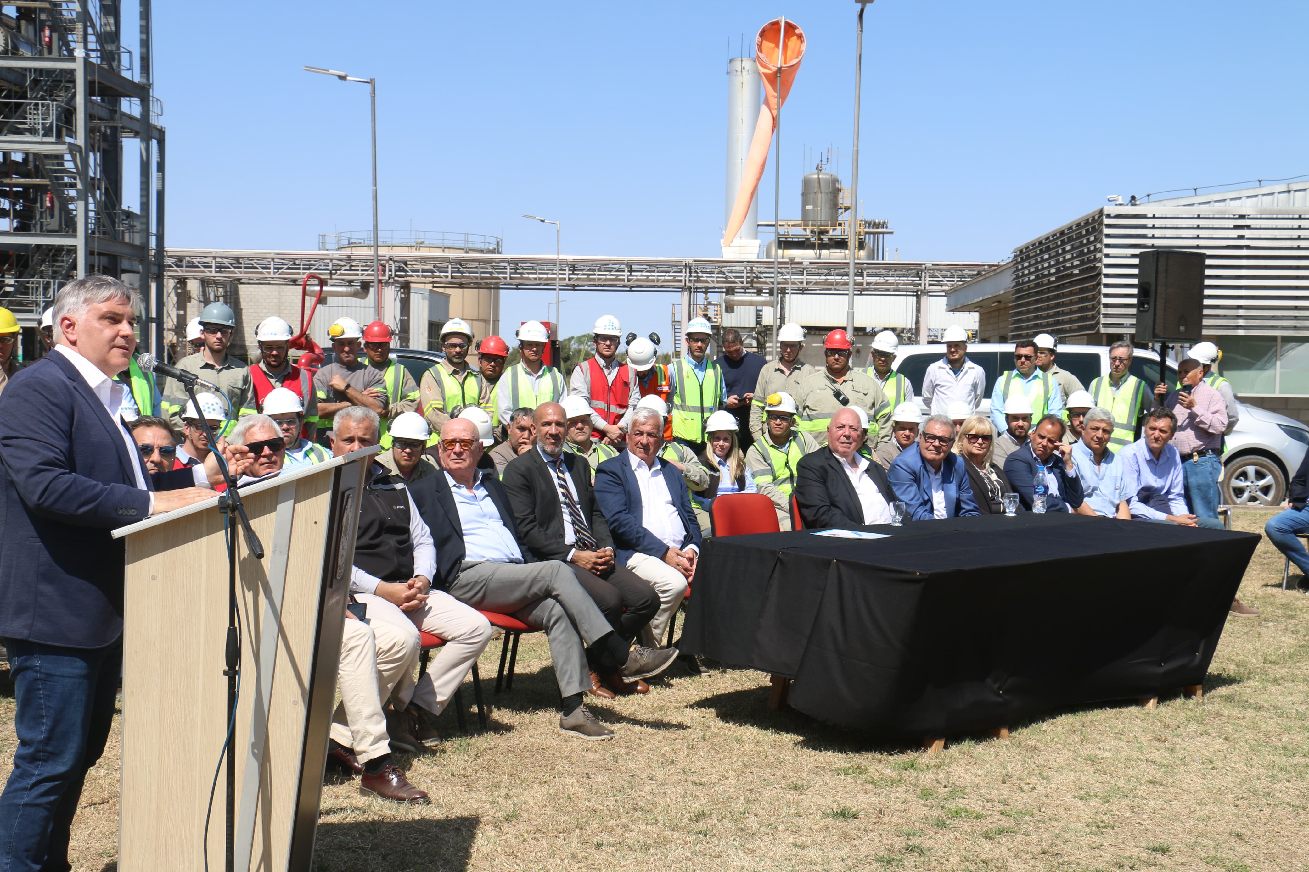 El evento contó con la presencia de figuras clave del sector empresarial y gubernamental, como Carlos Urquiza, gerente de Golden Peanut; Osmar Núñez, gerente de AGD; Roberto Urquía, titular de AGD; José Castelli, presidente de Bunge Argentina; Juan Manuel Llamosas, asesor del gobierno provincial para los departamentos del sur; Aldo Etcheverry, intendente de Alejandro Roca; y Graciela Bissotto, legisladora departamental.